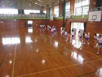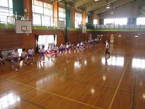 体育科では、体力テストの種目の一つであるシャトルランを行いました。最初に全国の平均回数等を説明してもらい、それぞれに目標をもって臨みました。