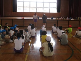6年1組と3年2組は、ドッジボールをしました。6年生は集会の企画や運営がとても上手になりました。