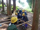 1日目の様子です。急な雷と雨で驚きましたが、午前は森小屋を作り、午後は仲間関係づくりのゲームを楽しみました。