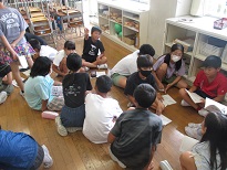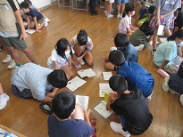 宿泊学習に向けて、しおりを読み合わせました。その後、班で活動の役割についての話し合いを行いました。