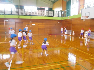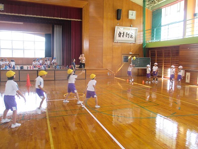 体育科では、スローベースボールに挑戦中です。作戦を考えたり、遠くまで投げる練習を行ったりしました。今日は実際に試合形式で、隣のクラスと対戦しました。