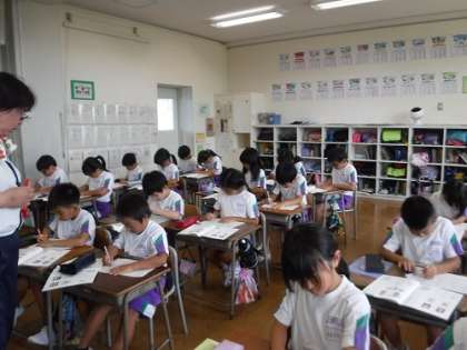 書写では、字形を整えて文字を書く学習をしました。「おれ」や「はね」を丁寧に書いたり、横画や縦画の間を揃えて書いたりと、気を付けていました。毎日書写の時間のように丁寧に文字を書いていけたらいいですね。