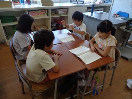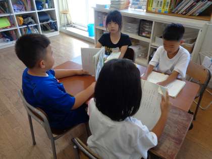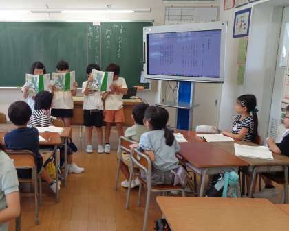 国語で、「雨のうた」という詩を学習しました。言葉のまとまりや、響きに気を付けたり、雨のイメージを膨らませたりしながら、詩の音読を楽しみました。