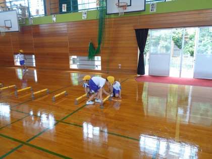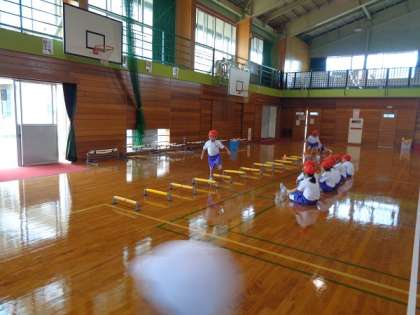 体育科の学習では、ハードルを使って体を動かしています。今日は、ハードルの準備の仕方、友達のよい動きを見つける学習の仕方をみんなで学習しました。いろいろなことにチャレンジしてがんばっています。