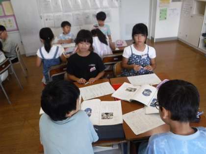国語科では、「どうぶつ園のじゅうい」の学習に入りました。グループで音読したり、獣医の仕事について読み取ったりしています。友達と相談しながら、ワークシートにまとめていました。