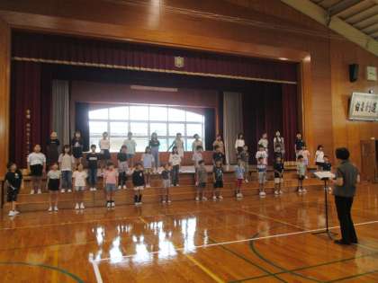 2回目の合唱教室がありました。今日は、初めて体育館の雛壇に並んで練習しました。歌詞の意味、発声の仕方を細かく講師の先生に教えていただきました。体育館いっぱいに歌声を広げることができました。