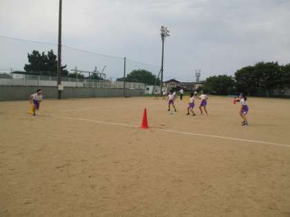体育科では、スローベースボールをしています。チームで作戦を立てゲームを進めています。どの子も思いっきりプレーをして、ゲームを楽しんでいました。