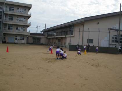 体育科では、スローベースボールをしています。チームで作戦を立てゲームを進めています。どの子も思いっきりプレーをして、ゲームを楽しんでいました。