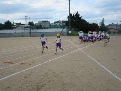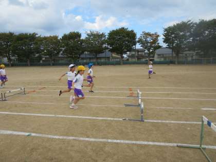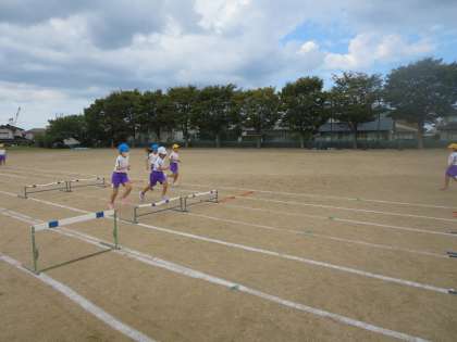 体育科でハードル走をしました。ハードルを同じ足で跳ぶことができるように、リズム良く走る練習をしました。