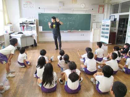 今日はパントマイムのプロ「カンジヤマ・マイム」の方々に、パントマイムを体験させていただきました。コツを聞いたり、みんなで実際にやってみたりととても楽しい時間でした。