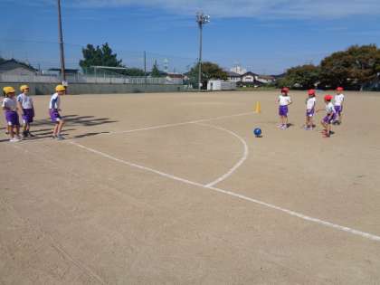 今日は、久しぶりに「ならびっこキックベース」をしました。子供たちは、団のみんなと協力してゲームを進めたり、友達の応援を全力でしたりしていました。