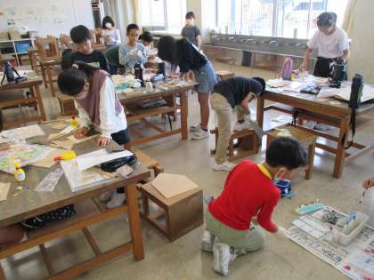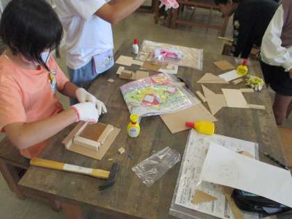 子どもたちは、目をキラキラさせながら、それぞれおもいおもいの作品づくりに取り組んでいます。