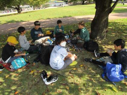 6年生は校外学習へ行きました。こころの劇場の後富岩運河環水公園にて昼食をとりました。