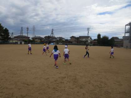 子供達は、なかよしタイムを楽しみにしています。今日は少し肌寒かったですが、半袖短パンで鬼ごっこやサッカー、ブランコ等をして元気に遊んでいました。