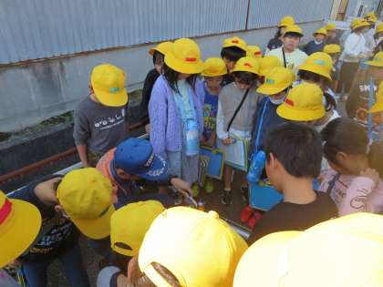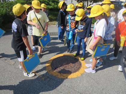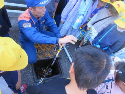 消防署の帰り道に、消火栓や防火水槽を見つけました。学校の敷地内にも防火貯蔵槽がありました。教科書で学んだことを実際に見て確認することができました。
