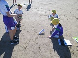 地面に直接手をついて調べたり、土を握って手のひらに感じる温度で調べたりもしました。