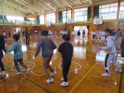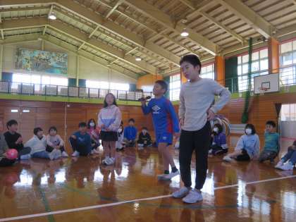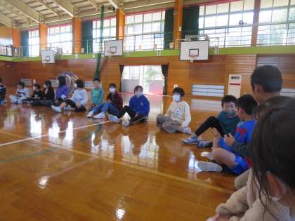 5年生が交流会を企画してくれました。5年生も3年生も、ばくだんゲームや椅子取りゲームをして、とても楽しそうでした。普段、教室が隣同士でも一緒に遊ぶことがないので、さらに心の距離もぐっと近づいたようで、いい交流会になりました。