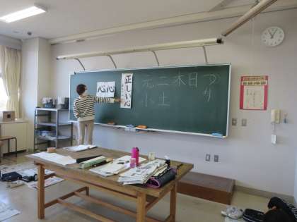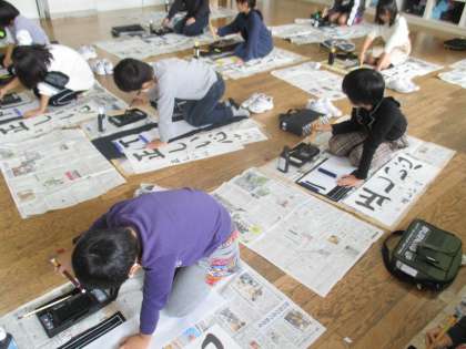 地域の書道の先生をお招きし、書き初めの練習をしました。3年生は、「正しい心」と書きます。先生から「心」を書く時のポイントを教えていただき、とても上手に書けるようになりました。