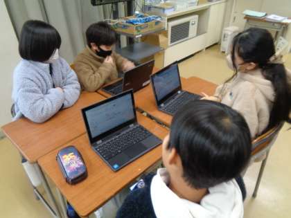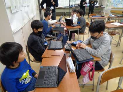 社会科で、これからの情報化社会について学び、考えています。今、世の中では、多様な言語で質問に答えたり、望んだ画像を生成したりするようなAIが生み出され、家電など様々な物がインターネットでつながり、情報化が加速度的に進んでいます。子供たちはこれからどんな社会になり、自分たちはどう生きていくのかについ友達ともに考えています。