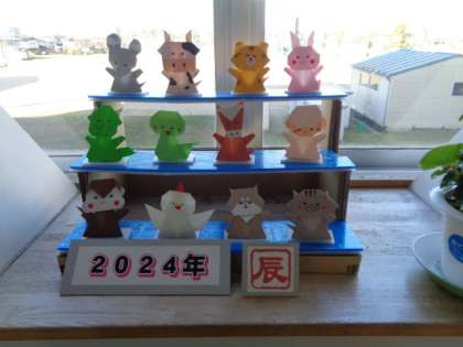 学校の廊下にかわいい干支の飾りが誕生しました。