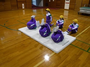 「ゆりかご」や「かえるの足打ち」をして、前転の動きを確認した後、前転に挑戦しました。昨年度もやった動きだったので、みんなスムーズに取り組むことができました。上達している様子も多く見られました。