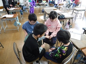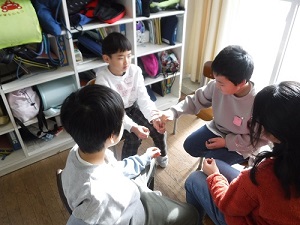 音楽科は、「日本のうたでつながろう」の学習に入りました。写真は、「ずいずいずっころばし」で遊んでいるところです。