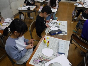 今年の版画は、〇〇している自分をつくります。まずは、顔から作り始めました。顔には何があるか、どんな形をしているかを確認しました。自分そっくりに作ろうと意気込んでいます。どんな作品になるでしょうね。