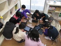 総合的な時間では、6年生の卒業に向けて、これまでの感謝とこれからの応援の気持ちを伝え、笑顔になってもらうために活動しています。いくつかのグループに分かれ、どのような活動をしたらよいか真剣に話し合っていました。