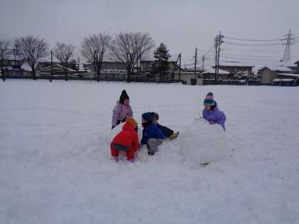 雪が積もったので、1年生みんなで雪遊びをしました。協力して雪だるまやかまくらをつくっていました。雪の冷たさを感じながら、冬を楽しみました。
