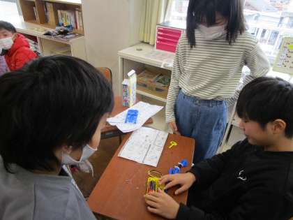 理科の学習は「電流がうみだす力」の学習を進めています。今日は、グループで実験手順を確認しながら電磁石の性質を調べました。