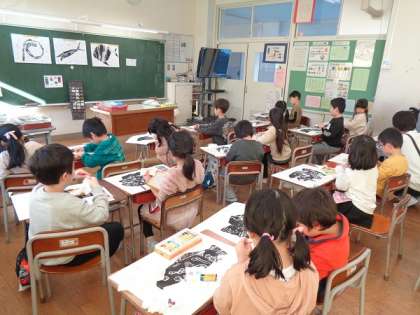 図画工作科の学習で、紙版画に挑戦しました。完成に向けてがんばっています。どんな作品になるのか楽しみです。