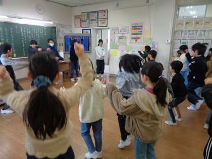 きらりタイムの時間に、運動委員会の6年生が一緒にダンスを踊ってくれました。子供たちは、少し恥じらいながらも、嬉しそうに一緒にダンスをしていました。