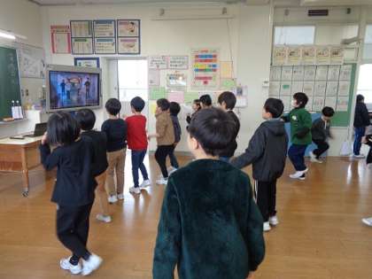 6年生が去ったあとも、動画を見ながら楽しそうに踊っていました。