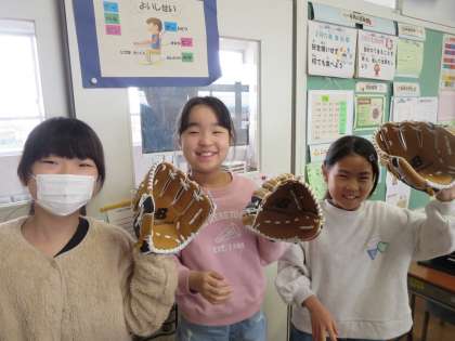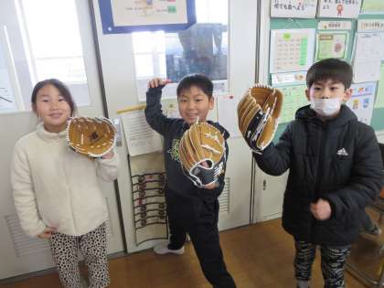 大谷選手からグローブが届きました。子供達はサインが書いてあるグローブを手にはめて大歓声を上げていました。野球をしたことがない子供も「野球してみたいな」と言っていました。この笑顔を大谷選手に見てもらいたいです。ありがとうございます!!