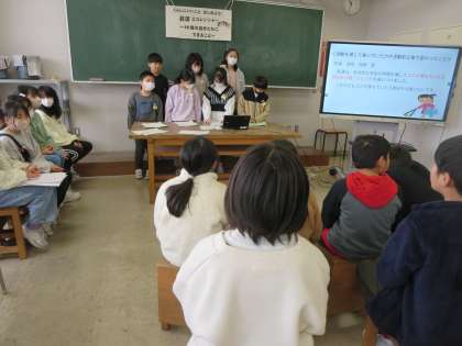 4年生から、総合的な学習の時間に取り組んできた活動についての発表を聞きました。萩浦地区をきれいにしたいという思いが伝わってくる発表でした。3年生は、発表を聞いて「ぼくもスポーツ公園でごみを見つけたら拾うようにしよう」「地球温暖化についてもっと詳しく知りたくなった」などど感想を言っていました。4年生の発表の様子を見て、発表の仕方についても多くのことを学んだようでした。