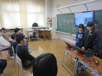 4年生から、総合的な学習の時間に取り組んできた活動についての発表を聞きました。萩浦地区をきれいにしたいという思いが伝わってくる発表でした。3年生は、発表を聞いて「ぼくもスポーツ公園でごみを見つけたら拾うようにしよう」「地球温暖化についてもっと詳しく知りたくなった」などど感想を言っていました。4年生の発表の様子を見て、発表の仕方についても多くのことを学んだようでした。