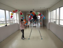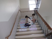 総合的な学習の時間に行っている「卒業プロジェクト」では、一人一人が役割をもち、6年生の卒業を祝うために活動しています。飾り付けを行うチームは、階段や廊下にお祝いを伝える掲示物等を設置しました。
