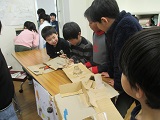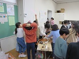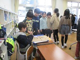 今日は1年生教室に招待してもらいました。1年生が秋の落ち葉やドングリでつくったおもちゃで遊びながら交流しました。一生懸命つくってもらった作品で遊んでいると、あっという間に時間が過ぎていきました。とても楽しい時間でした。