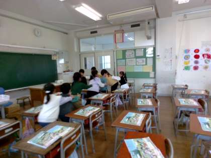 音楽の学習では、拍に合わせて手を叩いたり歩いたりしました。