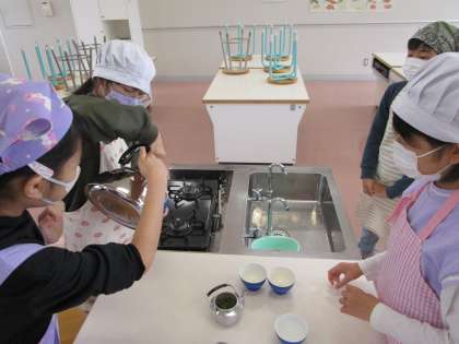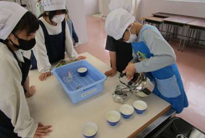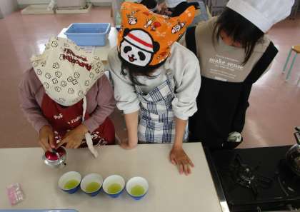 家庭科室の用具やこんろの安全な使い方を考えながら、おいしいお茶をいれました。