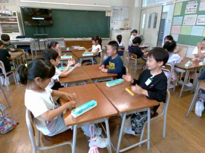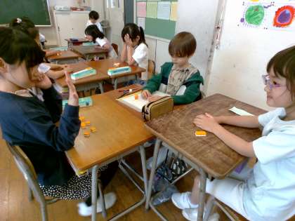 算数ではブロックを使って、「いくつといくつ」の学習をしました。友達と問題を出し合い、理解を深めました。
