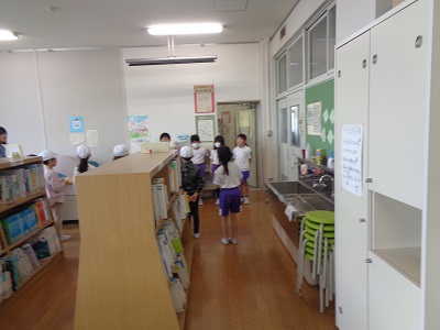 体育館や図書室等、それぞれの場所の紹介をしました。1年生の質問にもがんばって答えていました。自信をもって活動していました。