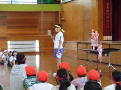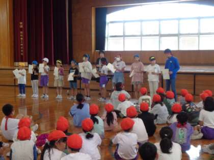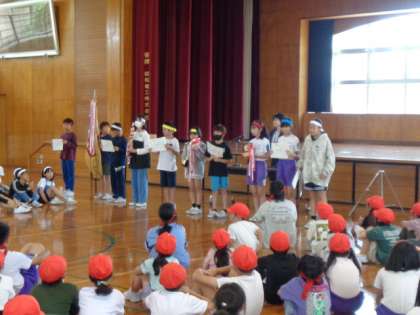 運動会の表彰式を行いました。総合や応援、個人走の最高記録賞を表彰しました。その後、解団式を行いました。各団、6年生が中心となって、健闘をねぎらったり、頑張りを感謝し合ったりしました。