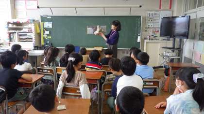 読み聞かせがありました。1組は、「三枚のお札」「うし」、2組は、「キツツキのくちばしはなぜ長い」「メアリ・スミス」でした。