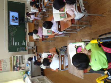 国語科では、「つぼみ」のことについて学んでいます。子供たちが慣れ親しんでいる「物語文」ではなく、「説明文」の学習です。子供たちは、どんな花のつぼみなのか予想を楽しみながら教科書を読み進めています。