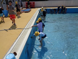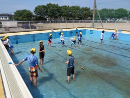 6月12日(水)にプール清掃を行いました。萩っ子みんなが気持ちよく水泳学習を行えるように、6年生みんなで協力して、最後まで一生懸命に行っていました。