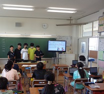 総合的な学習の時間では、「働くこと」や「仕事」について考えています。今回は、国語科で行った先生方のインタビュー内容をスライドにまとめ、発表しました。それぞれの先生方の働くことや仕事に対する考え方にふれ、自分の考えを広げたり深めたりしている様子が見られました。