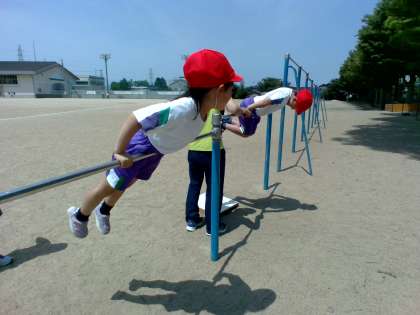 体育では、鉄棒の学習に取り組んでいます。真剣な表情で、新しい技に挑戦する1年生でした。