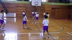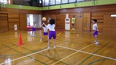 体育科では、ゴール型ゲーム「ポートボール」に取り組んでいます。どうすればたくさん点が入るか、チームで試行錯誤しながら作戦を考えています。