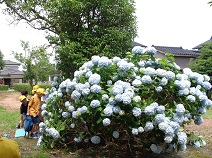 温井公園で休憩。素敵なアジサイを発見。観察して、メモもしっかり書きました。